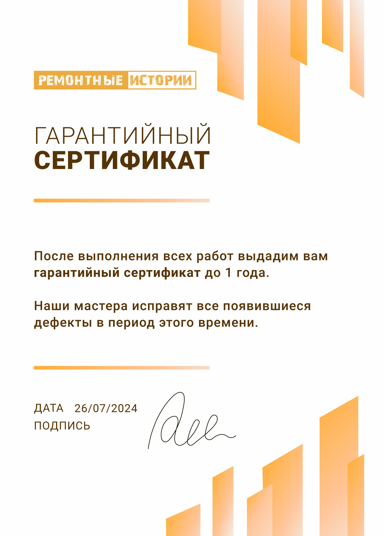 Наша компания является добросовестном и ответственным исполнителем, ввиду чего мы официально выдаем гарантию на проделанную работу, сроки которой составляют не менее 1 года с даты приема объекта заказчиком. Стоит отметить, что наша компания выдает гарантию на работы любого уровня сложности.